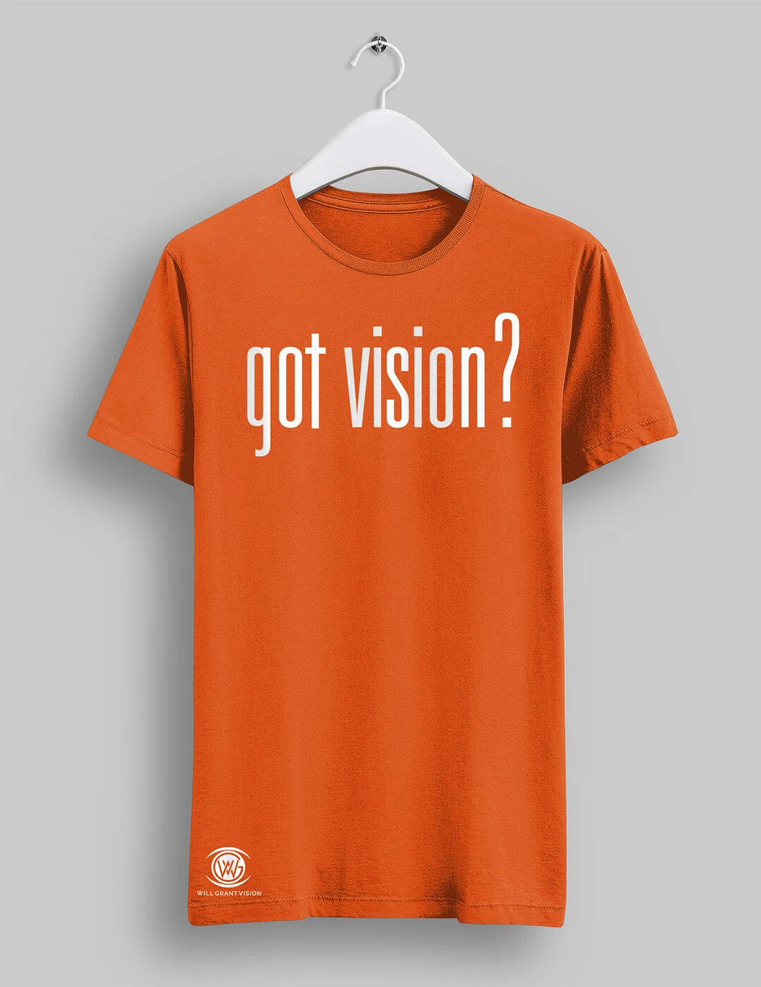 Short-sleeve T-shirt with “got vision?” logo on the front and “Will Grant Vision” logo featured right lower corner. Crewneck collar.